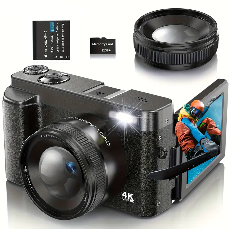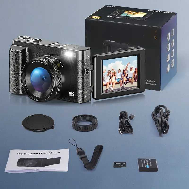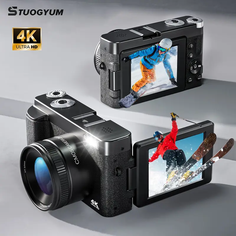 STUOGYUM Appareil Photo Numérique 4K pour Photographie et Vlog, Caméra Compacte avec Écran Pivotant de 180°, Zoom Numérique 16X, Stabilisation Anti-Tremblement, Flash, Objectif UV et Carte TF 32 Go Incluse – 48MP