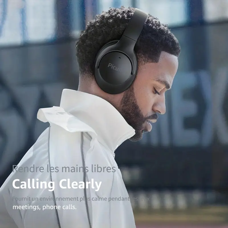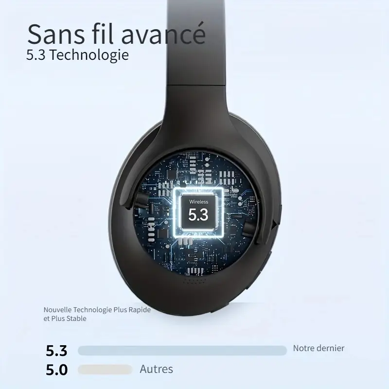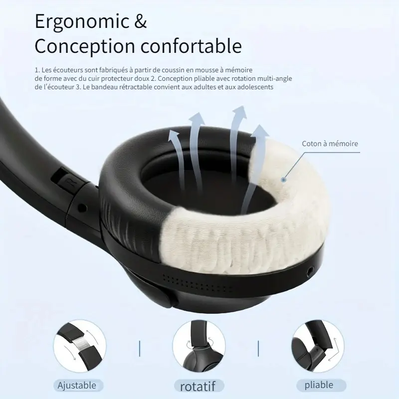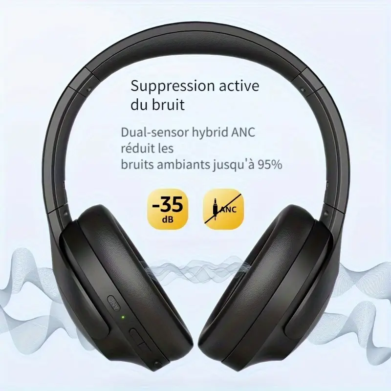 Casque Hybride à Réduction Active du Bruit, Casque Sans Fil Sur Oreille, 40H d’Autonomie, Audio Haute Résolution, Basses Profondes, Coussinets en Mousse Mémoire, pour Voyage et Bureau.